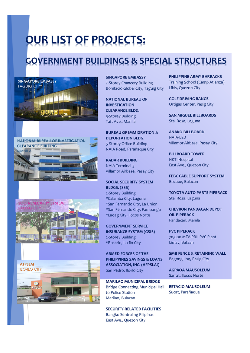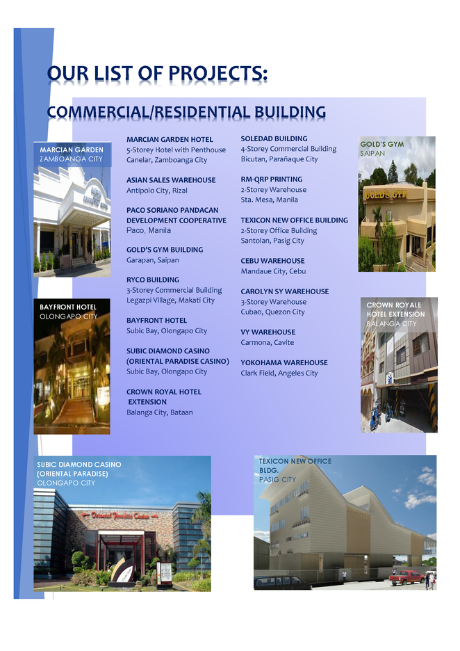 The firm is well versed not only in local design codes but also with international standards as well, since we have done projects in other countries such as Japan, Thailand, Guam, Saipan, Indonesia, Vietnam, Nigeria, Angola and the Middle East.